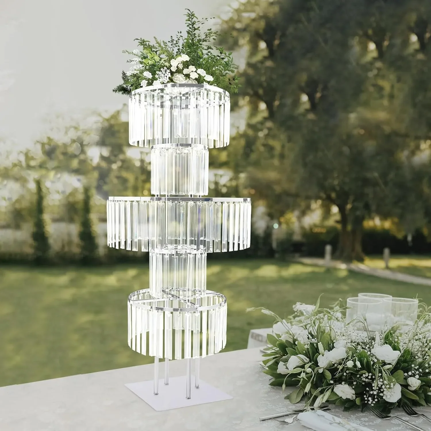 5 Tiers Crystal Flower Stands, 43.3 In Round Chandelier Pedestal,Wedding Table Centerpieces for Birthday Party Decoration
