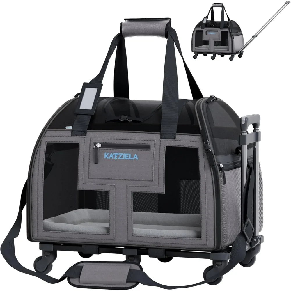 Airline Approved Pet Carrier - Rolling Portable Travel Carry Crate for Small Dog, Puppy or Cat - Soft Removable Wheeled